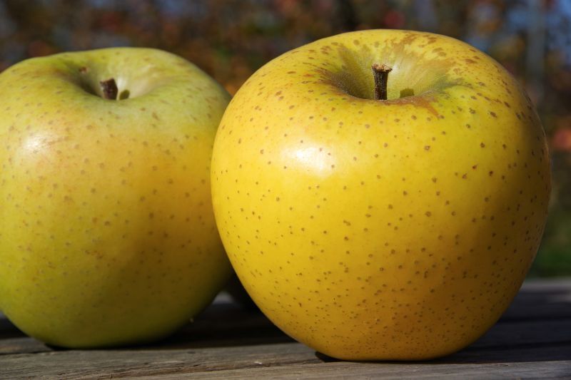 ゴールデンデリシャスと千秋を交配して作られました。